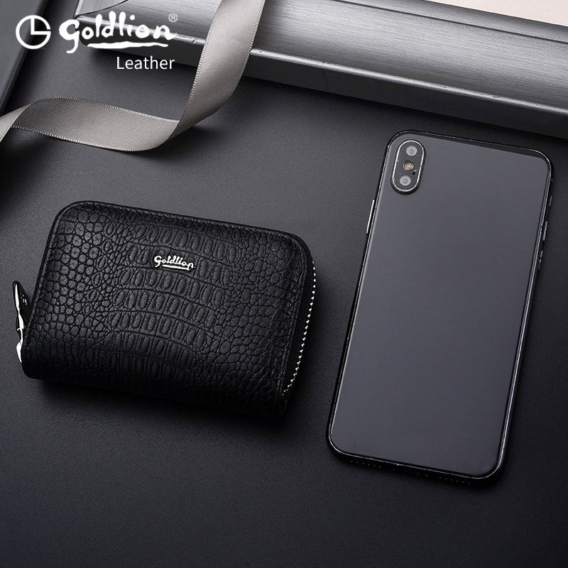 Goldlion card bag men's multi-card position leather large-capacity cowhide small mini card anti-degaussing bank card credit card