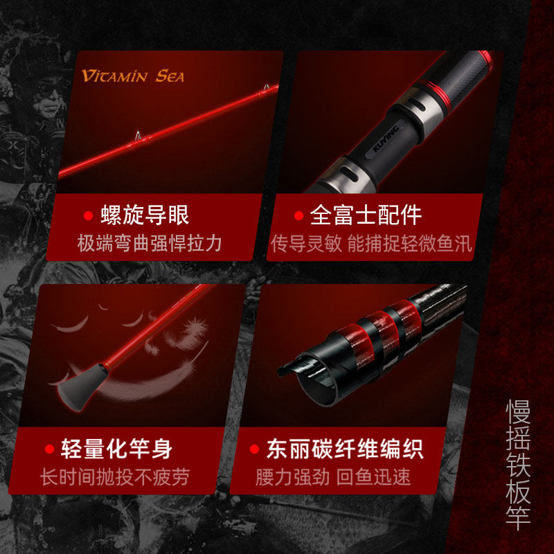 Cool Shadow KUYING Vitamin Sea Slow rocking iron plate Pole high carbon road Apole 2 04 m boat fishing rod straight shank gun handle-Taobao