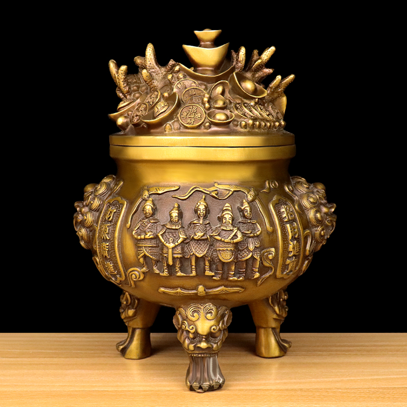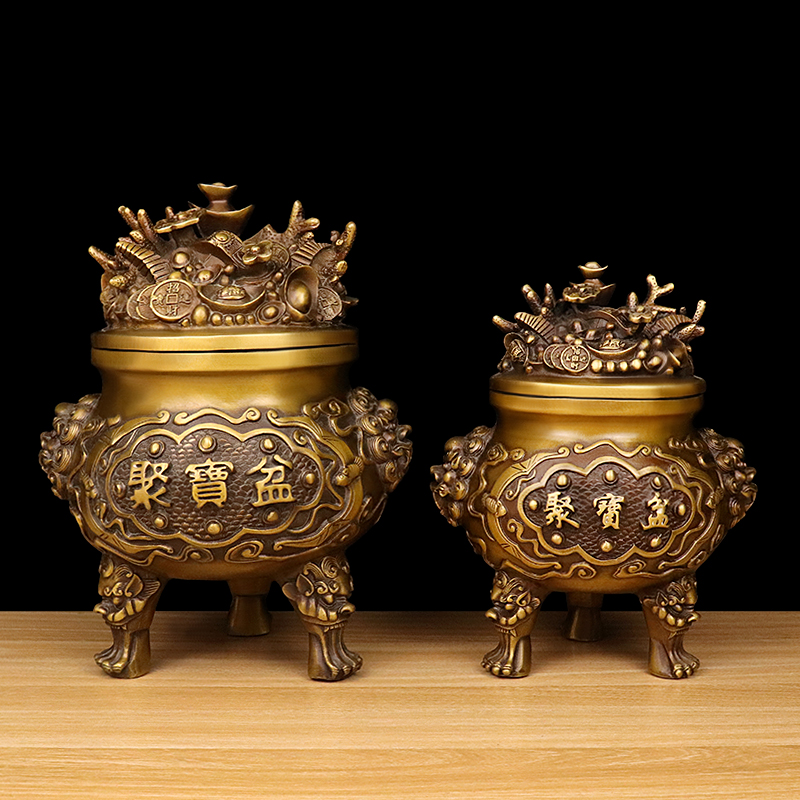 Cornucopia ornament Pure copper three-legged ding open cover incense burner Home Feng Shui recruitment Wangju ornament wealth craft gifts
