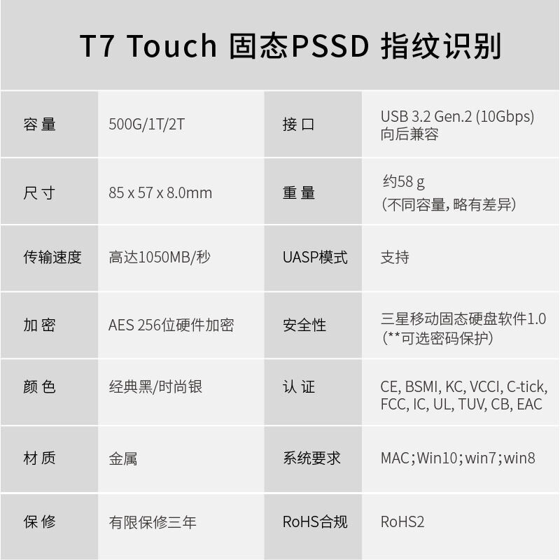 SAMSUNG Samsung T7 1TB Mobile Solid State Hard disc USB3 2 Mobile Solid State Hard disc Touch Fingerprint