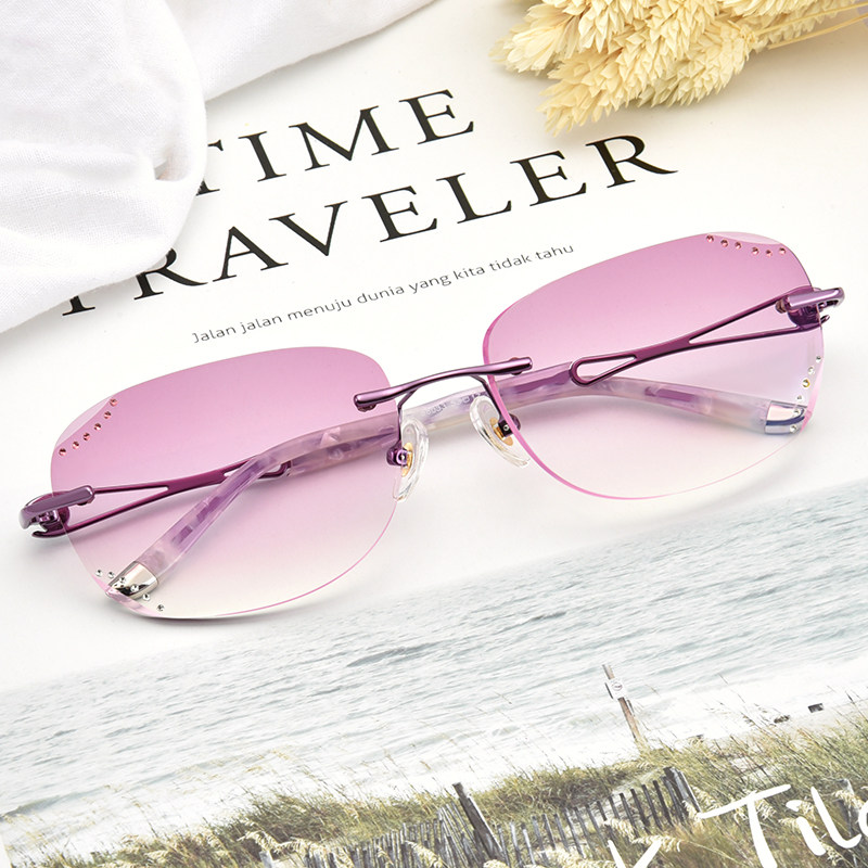 Douyin Xiaohongshu with the same style of myopia glasses female frameless diamond cut edge big face net red plain face glasses frame with degree