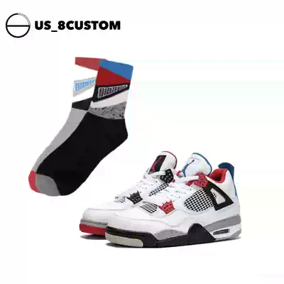 US8 sneakers custom fit with What The AJ4 White Red Blue Mandarin duck white cement Black Red Hook socks