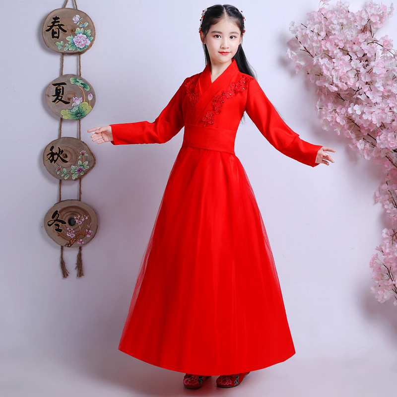 Hanfu children's super fairy girl's costume Chinese style spring and autumn little girl's skirt dress guzheng dance performance costume