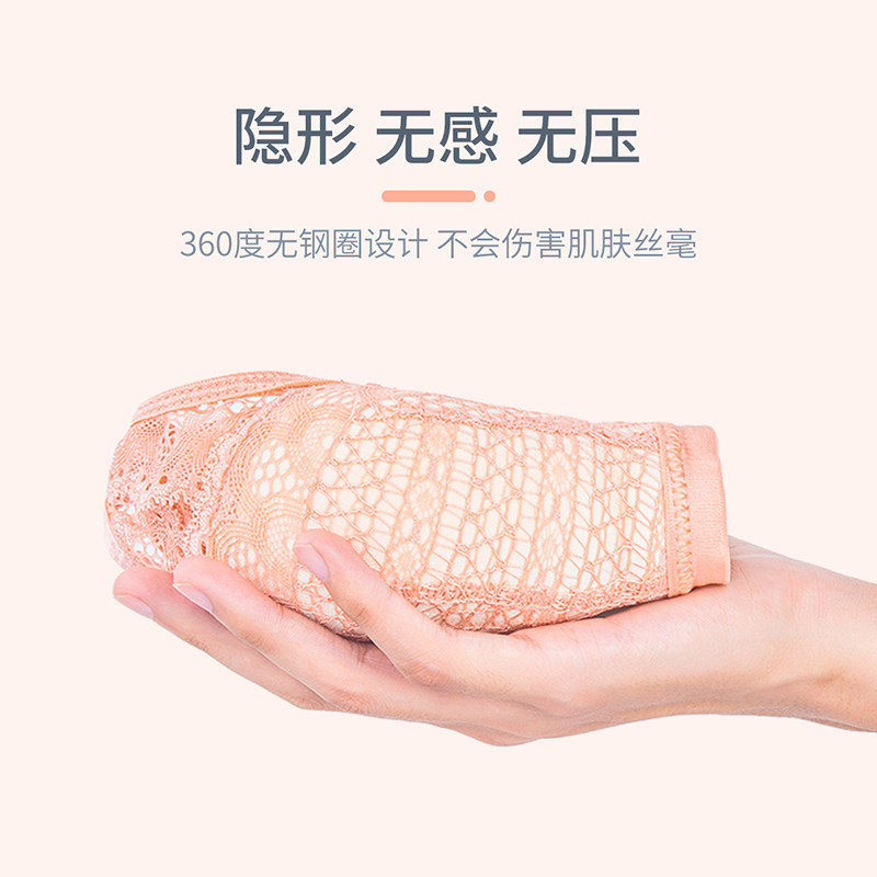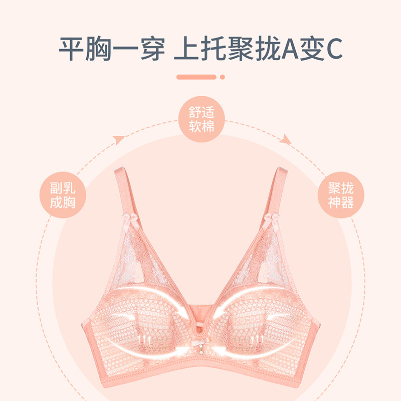 Mu color angel no rimless underwear Close-up breast bra set Female sense lace cover baby cotton small chest gathered