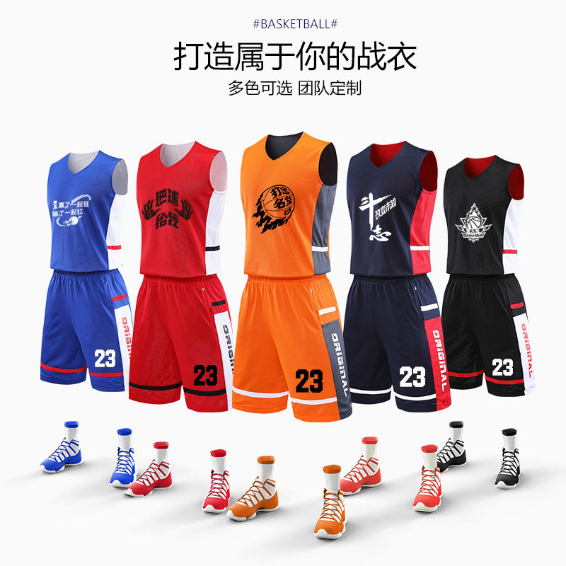 New basketball suit male custom double-sided jersey student passer-by Wang street match team wear breathable balloon suit