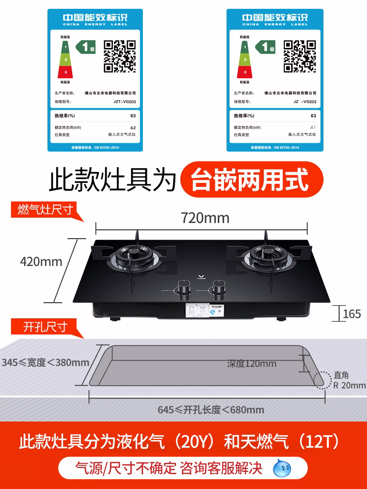 VIOMI Yunmi VG203 Gas Stove Gas Stove Double Port Gas Stove Meng Fire Desktop Embedded Liquefied Gas Stove