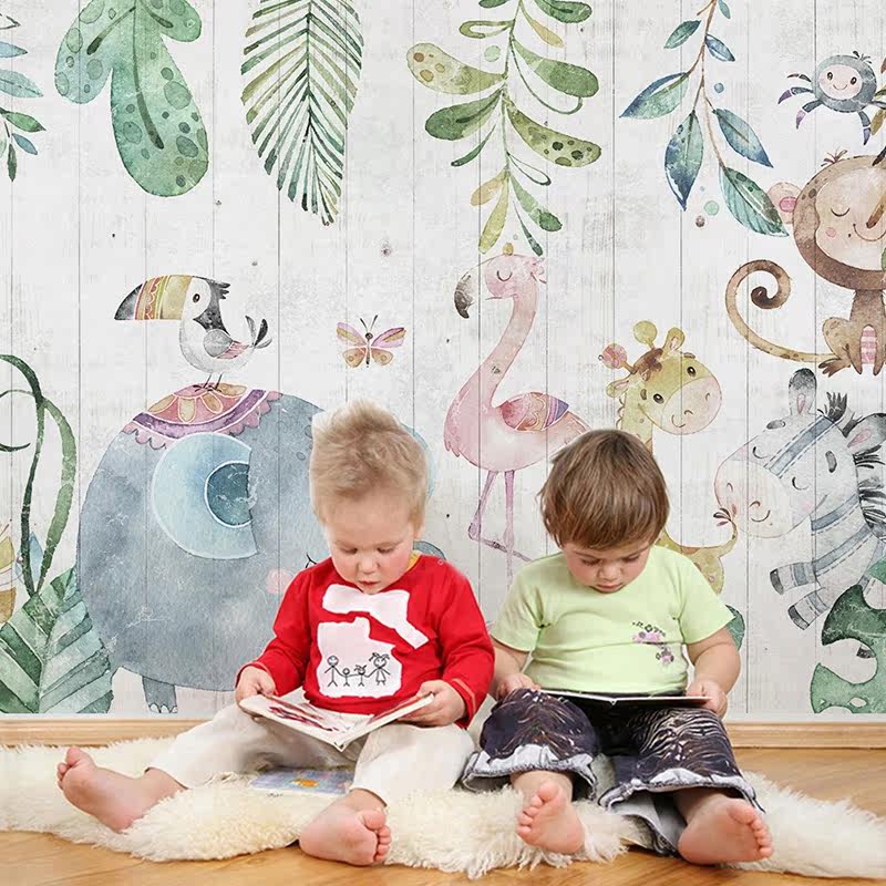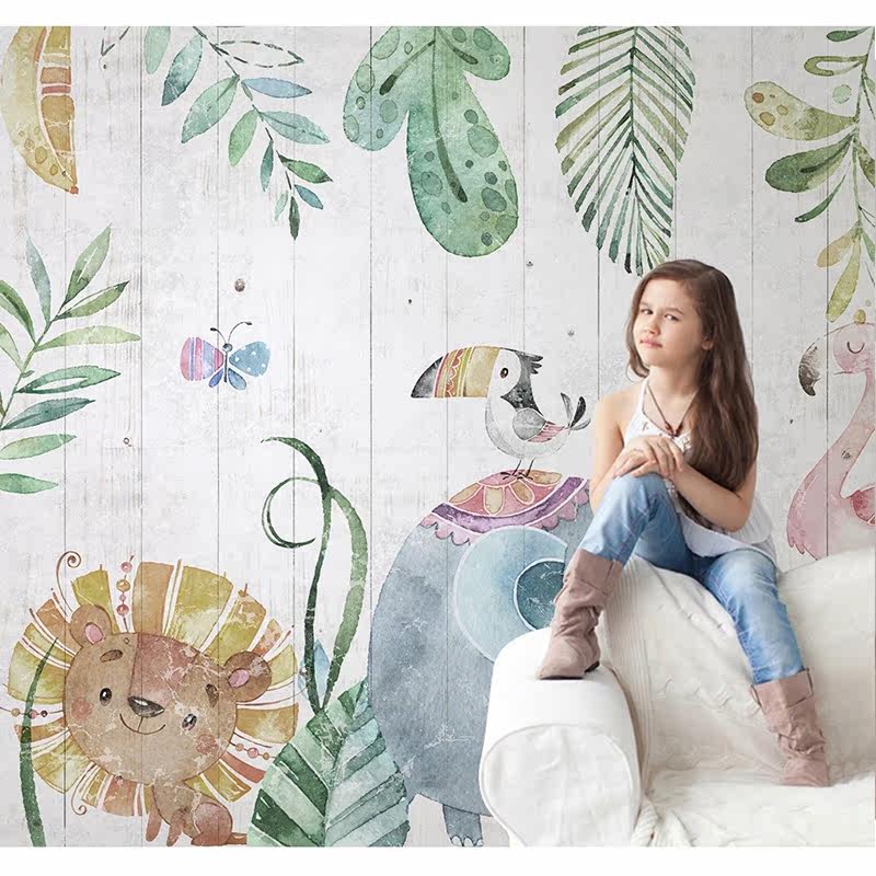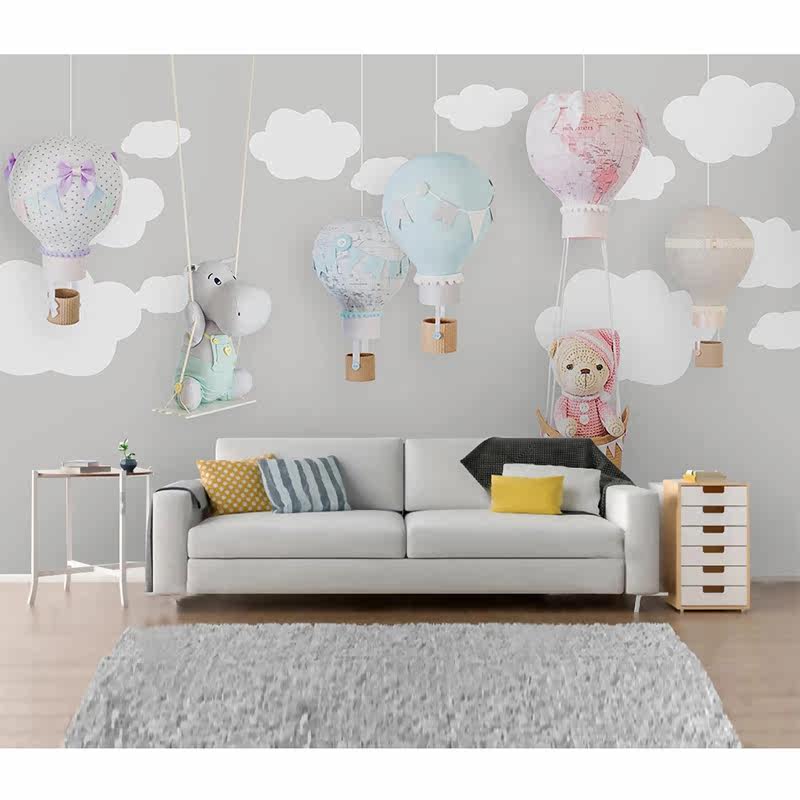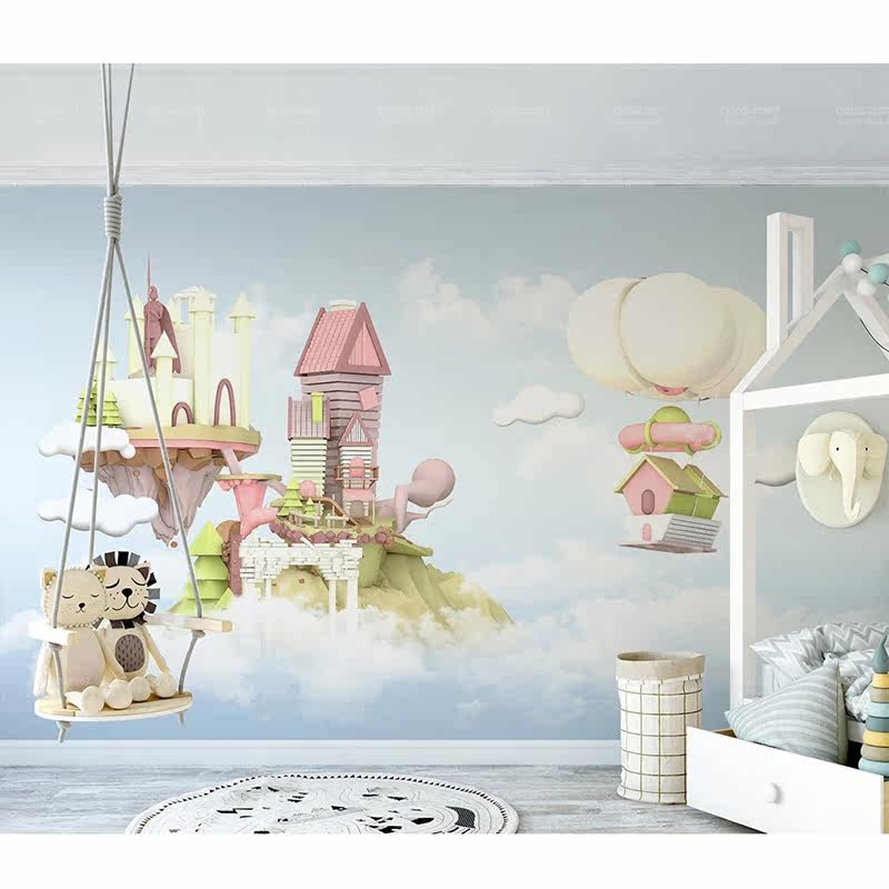 Nordic minimalist cartoon animal castle balloon children's room boy girl room background wall custom seamless mural