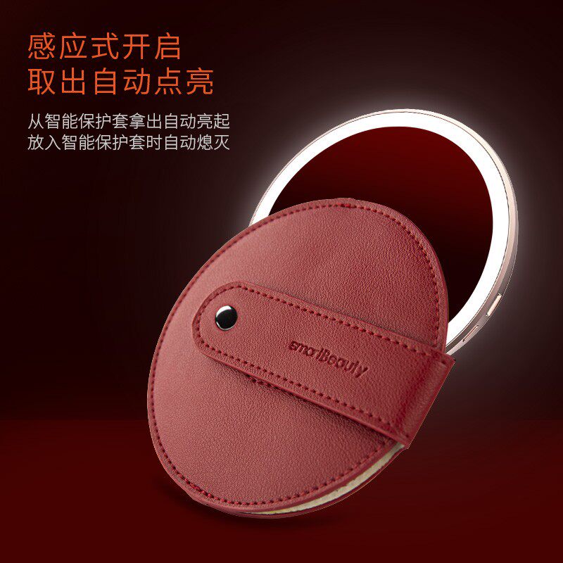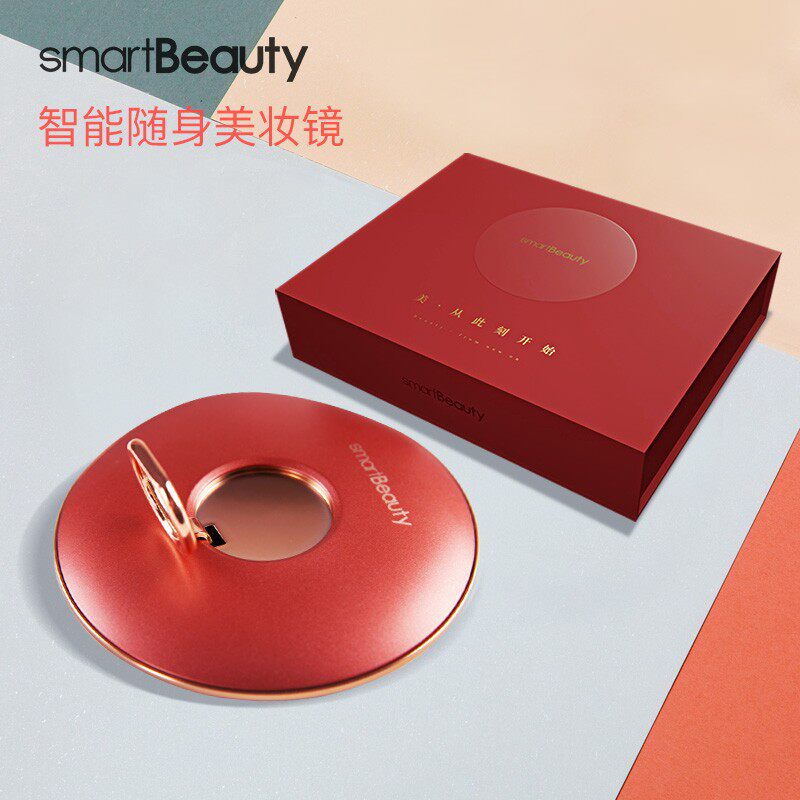 smartbeauty hand-held makeup mirror Portable portable with light small mirror smart ins wind beauty mirror woman