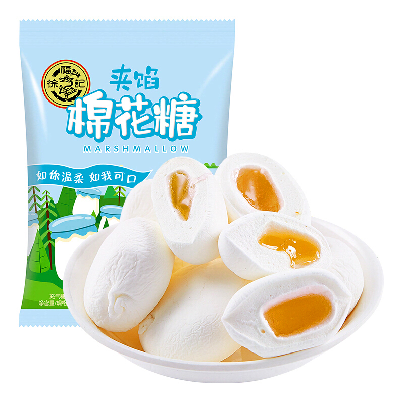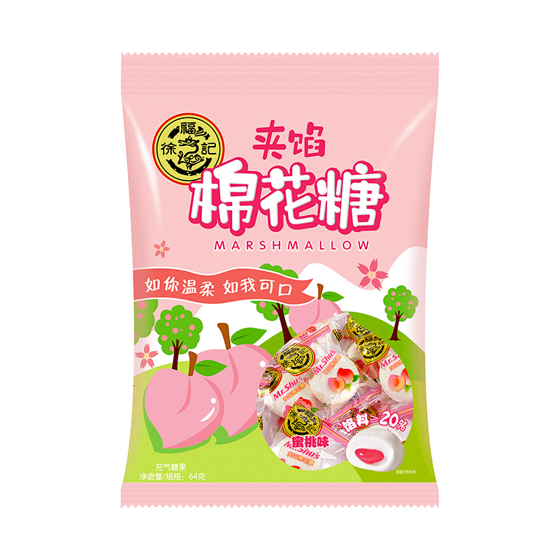 Xu Fukee cotton candy honey peach grape sweet orange yoghurt juice sandwich soft candy fruit soft sugar nostalgia small snacks 64g