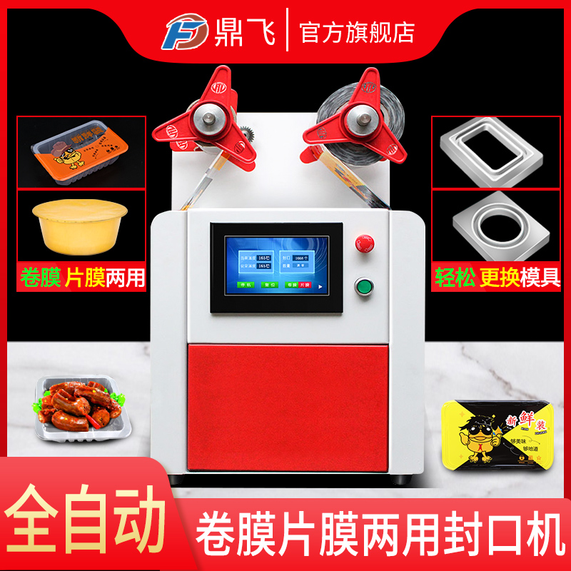 Tripod full automatic freshness preservation box sealing machine commercial duck goods delivery packing box sealing machine plastic case round bowl press film machine aluminum foil dining case sealing machine hand press style roll film hemp hot packing machine