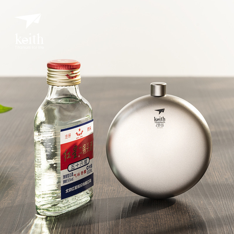 keith Armour outdoor carry-on titanium wine jug ultra light round pure titanium flat wine bottle delivered with small funnel 150ml