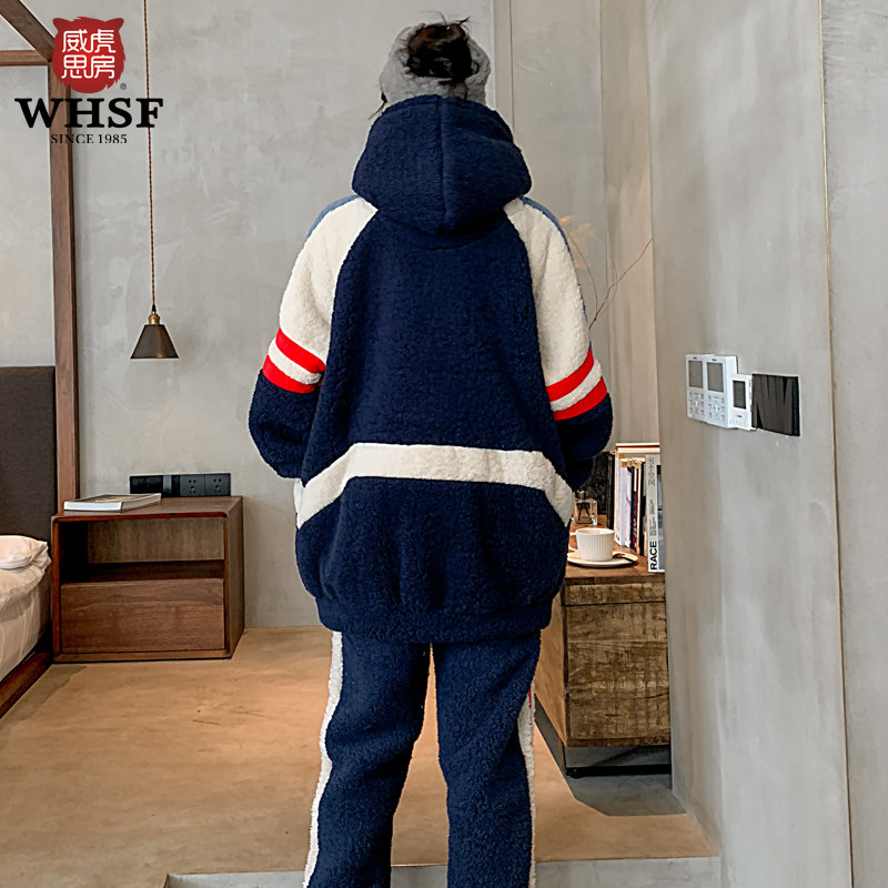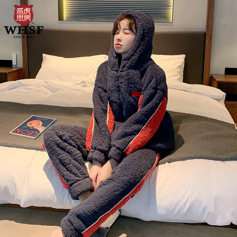 Coral fleece pajamas women's autumn and winter padded college uniform flannel can be worn outside zipper hooded household clothing suit