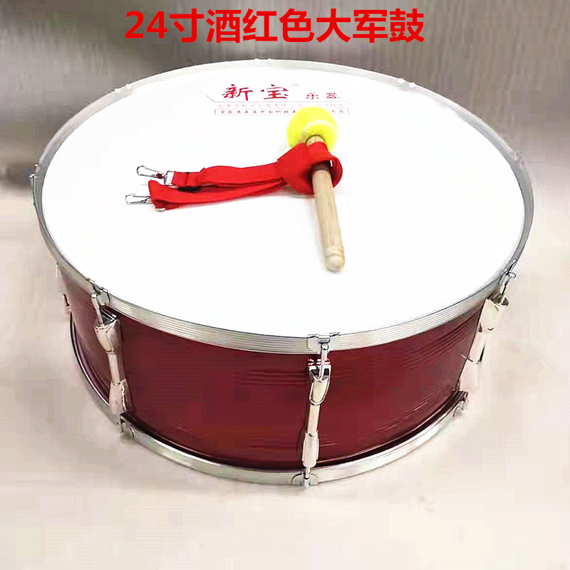 New Po Red Army Drum 24 inch New Po Red Army Drum 13 inch New Treasure Stainless Steel Color Drum 22 inch New Treasure Stainless Steel Color Snare Drum 13 inch Tennis Wooden Handle Army Drum Hammer A red snare drum