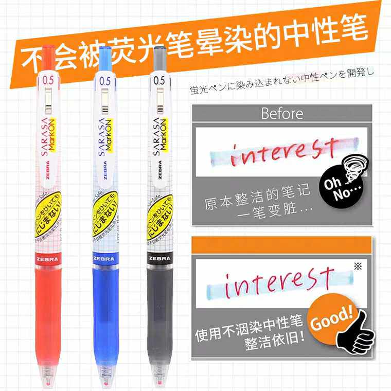 Highlighter does not smear dye ink Japan ZEBRA zebra quick-drying gel pen JJ77 grid rod replaceable refill secondary school