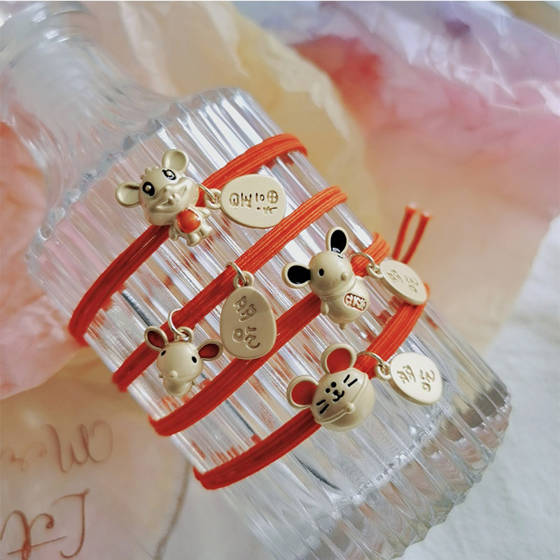 This Life Year BI Enters the Little Mouse New Year Red Red Hair Ring of the Teenage Girl Hearts Hair and Hair Leather Fascia