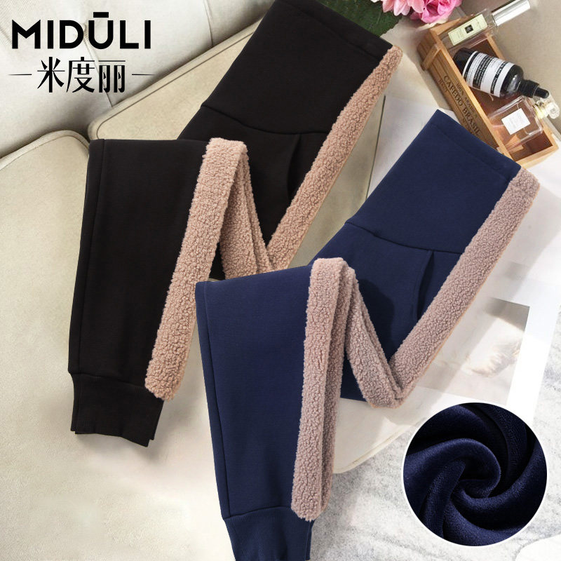 Pregnant women's pants winter thickened with velvety warm cotton pants winter clothing autumn and winter style outside wearing fashion lamb suede sports pants children