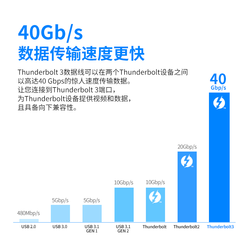 (Black)Thunderbolt3 丨 40Gbps transmission 丨 5K HD 丨 100W power supply