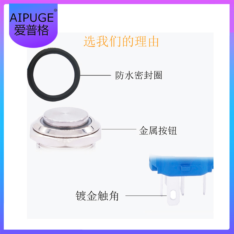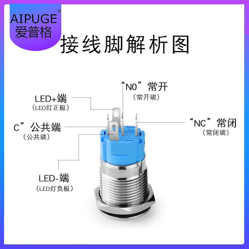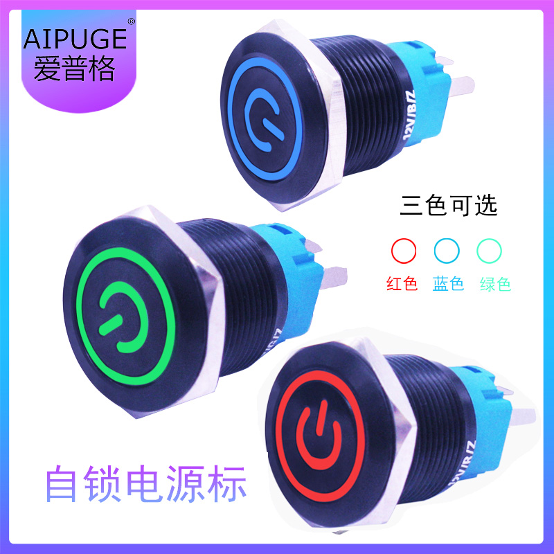 16MM flat head self-lock red light (with wire plug for another) oxidation black 16MM flat head self-lock blue light (with wire plug for another) oxidation black 16MM flat head self-lock green light (with wire plug the other