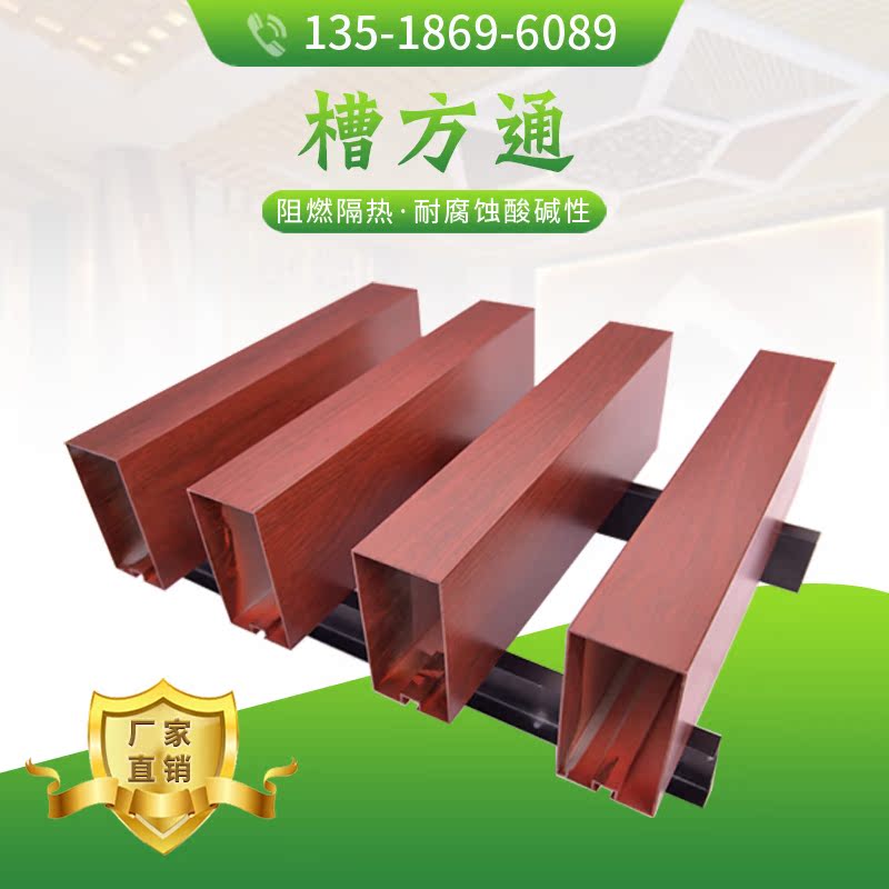 Custom aluminum square pass Wood grain aluminum square pass Groove square pass Shaped groove square pass Profile aluminum square pass Aluminum hanging piece
