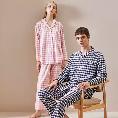 Red Bean Cotton woven wool couple pajamas ladies home clothes Spring and Autumn Winter long sleeve home clothing men's suit