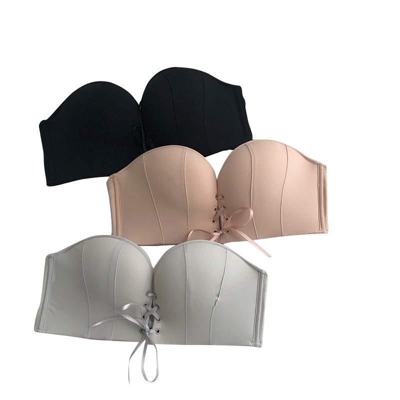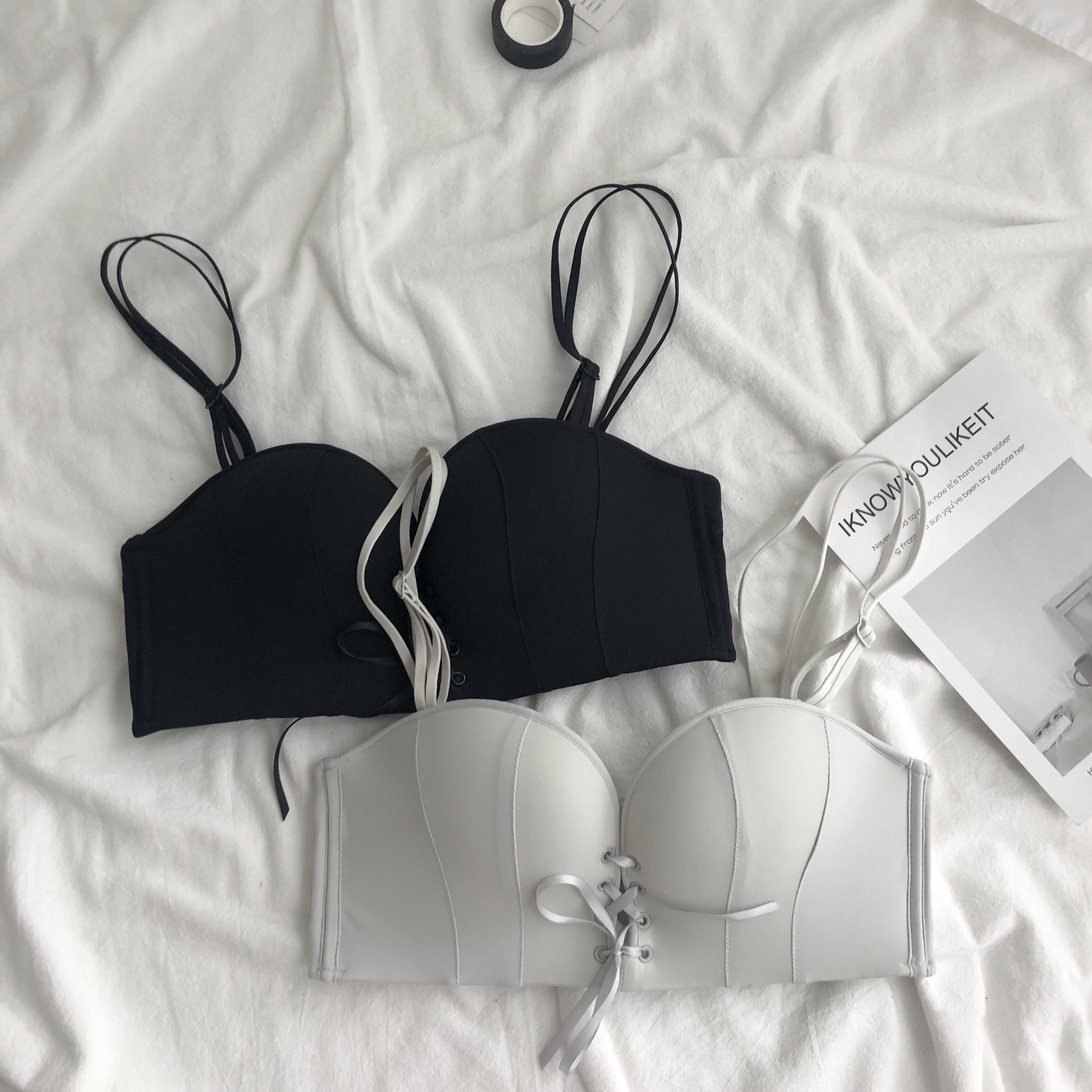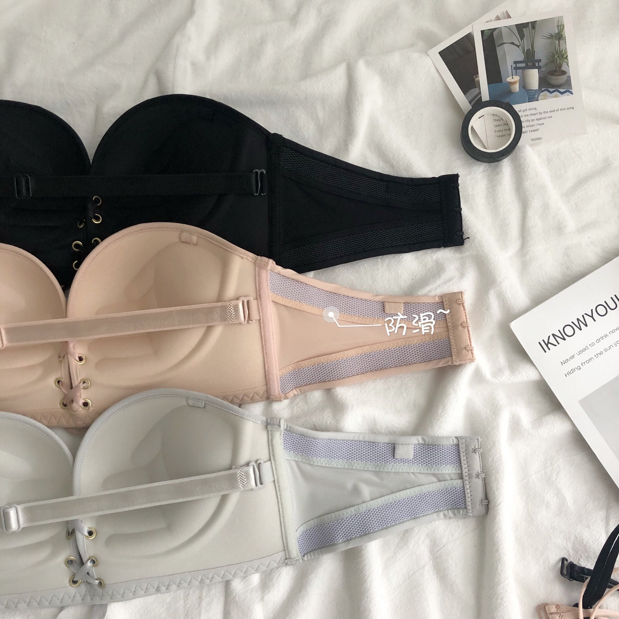Drawstring strap strapless underwear women's small breasts gather without steel ring upper bra bra bra bra-slip non-slip invisible bra