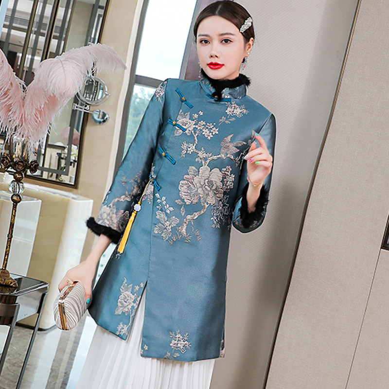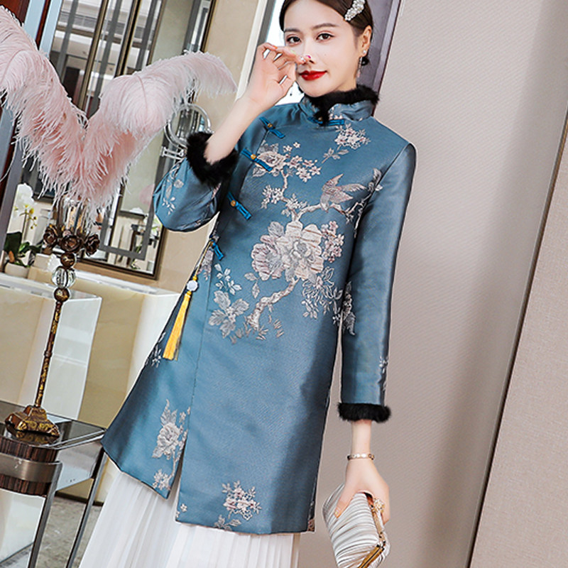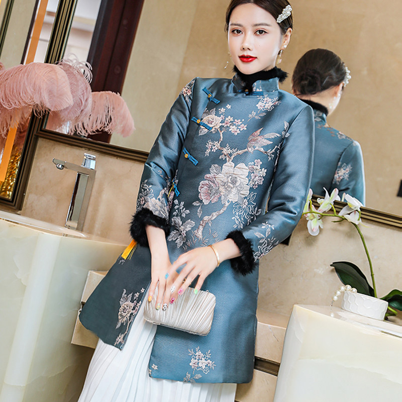 Mrs. Kuo cheongsam short cotton coat Chinese style improved version quilted thickened long-sleeved Chinese Tang suit jacket coat winter new
