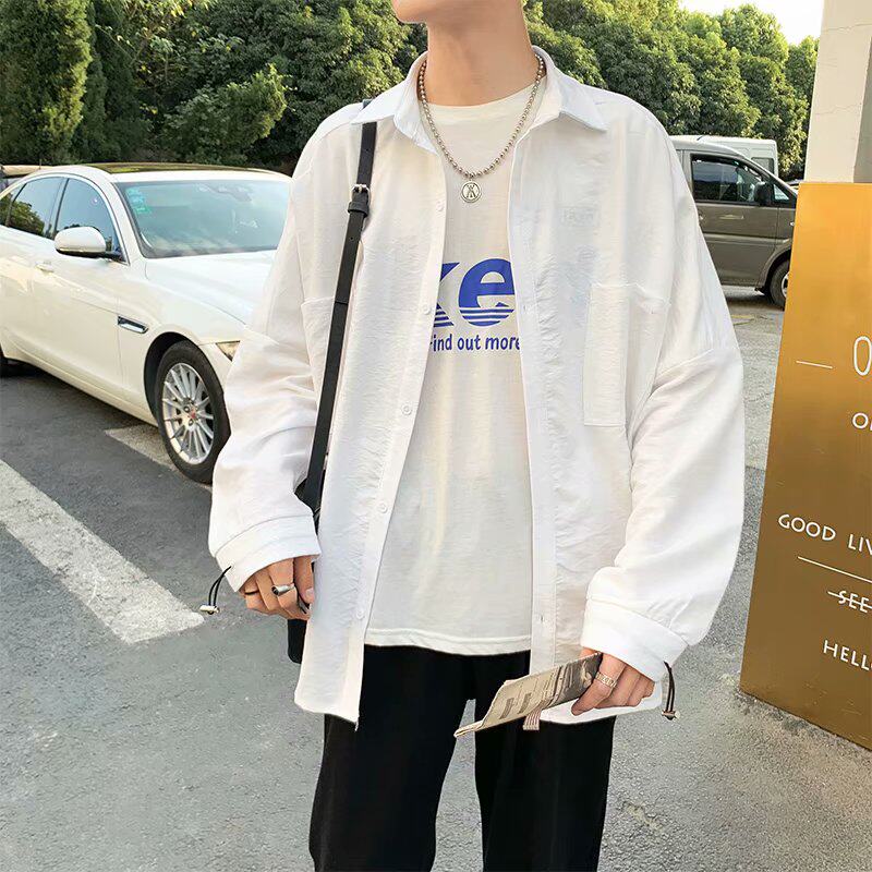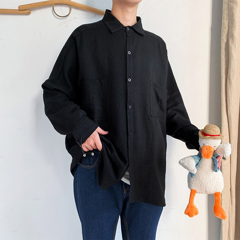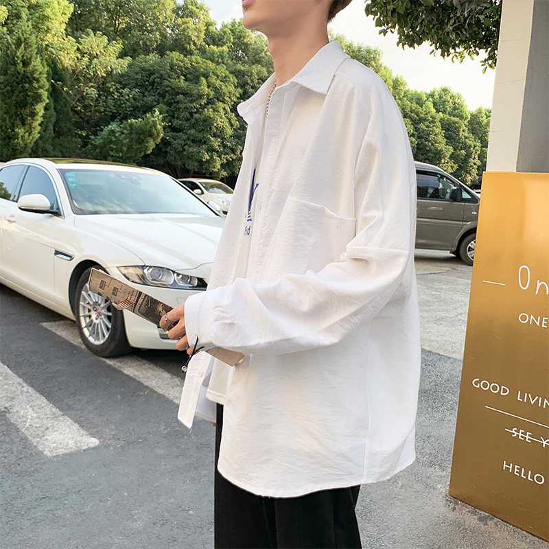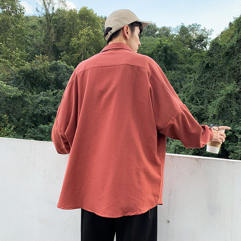 Fall Harbor Wind Shirt Male long sleeves Pure colour Japanese version Korean version Leisure students Original Cebu Wind Ins Trend Relaxed Shirt