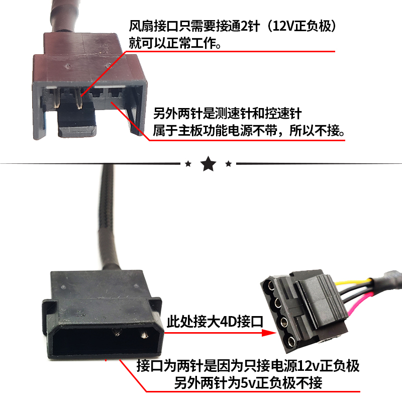 Large 4D turn a fan small 4pin big 4D turn three fans small 4pin big 4D turn four fans small 4pin