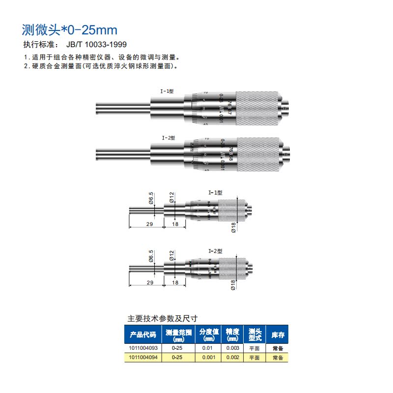 Chengquanchuan brand micrometer micrometer head 0-25 spiral differential head differential device micrometer inner diameter