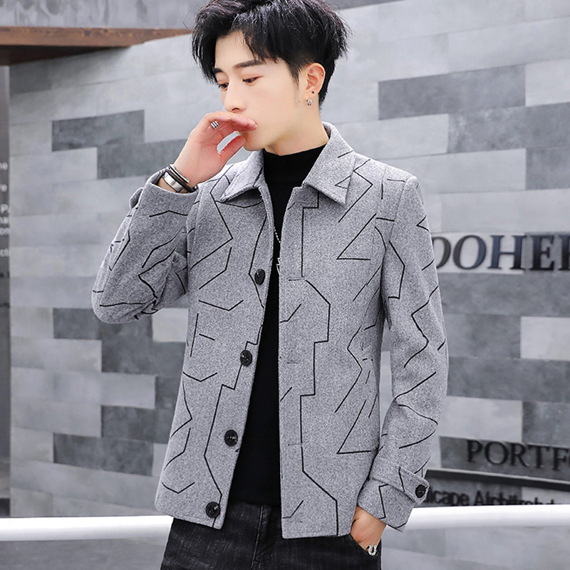 Jacket men's autumn and winter short and medium woolen ruffian handsome trend thickening men's coat 2021 new windbreaker woolen coat