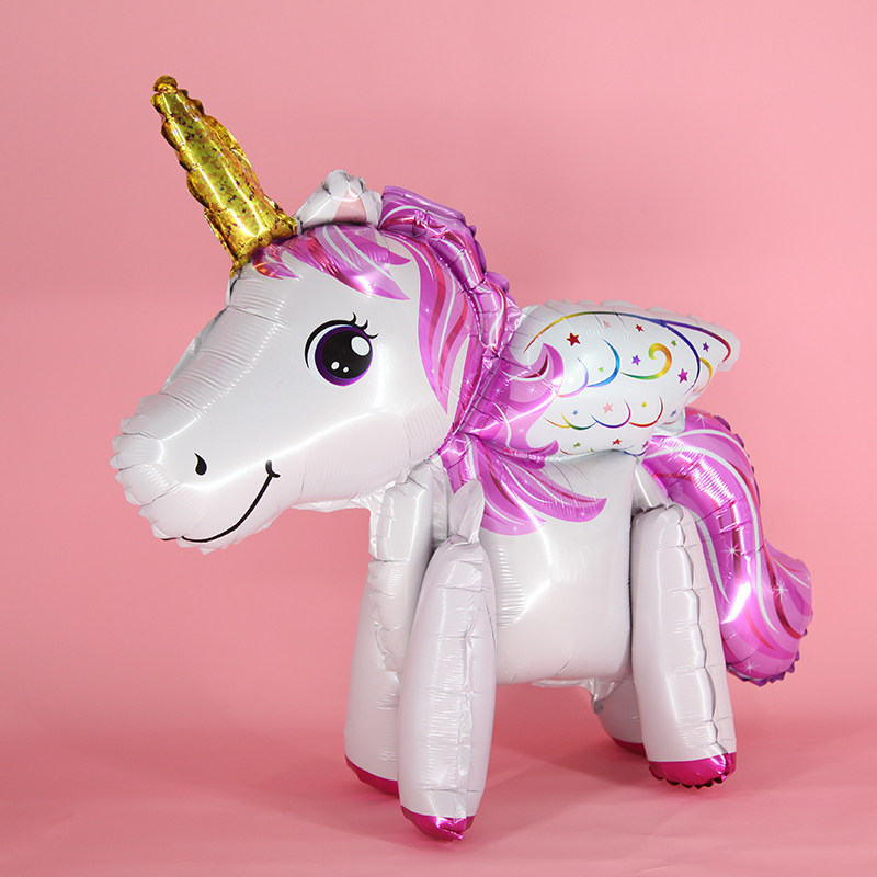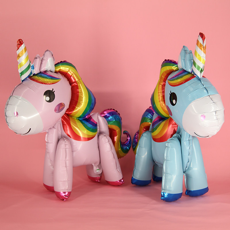 Baby Birthday Arrangement Supplies Unicorn Styling Rainbow Pony Ponies Standing Aluminium Film Balloon Children Birthday Party