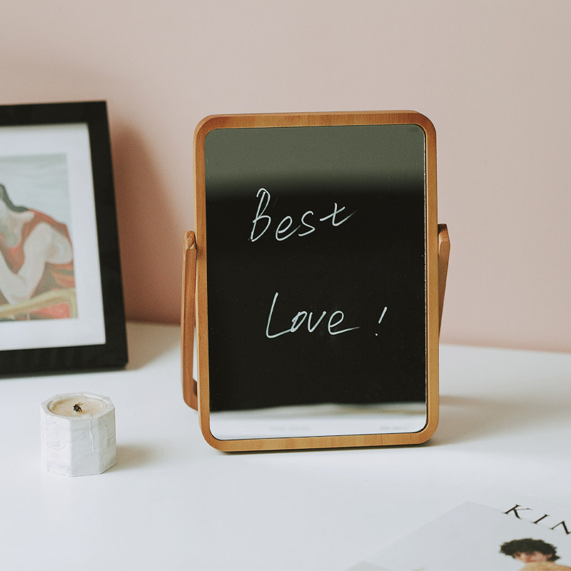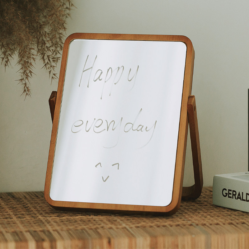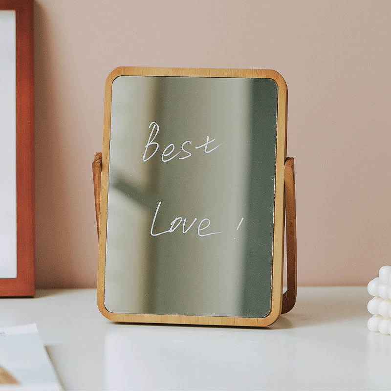 BOBAO retro wood-table makeup mirror dorm room female desktop portable large number student mirror folding home INS