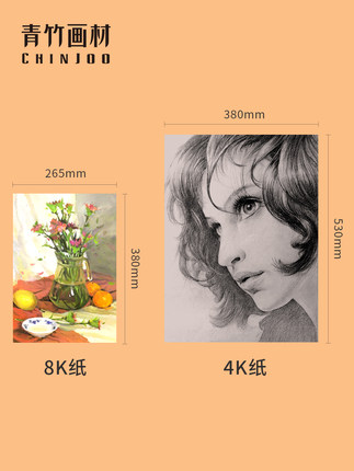 Bamboo sketch paper 8K gouache paper 8 open 4k thickened 160g special children's painting 48 color lead painting special sketch paper Watercolor paper Sketch paper Beginner drawing paper Professional sketching
