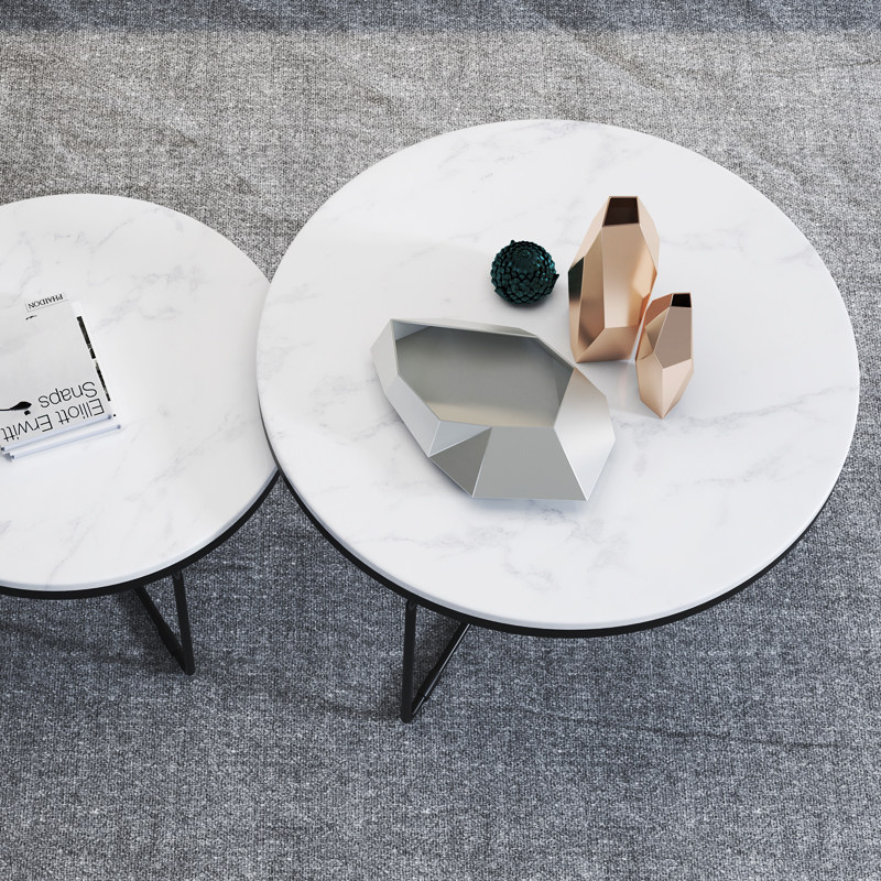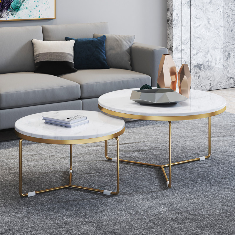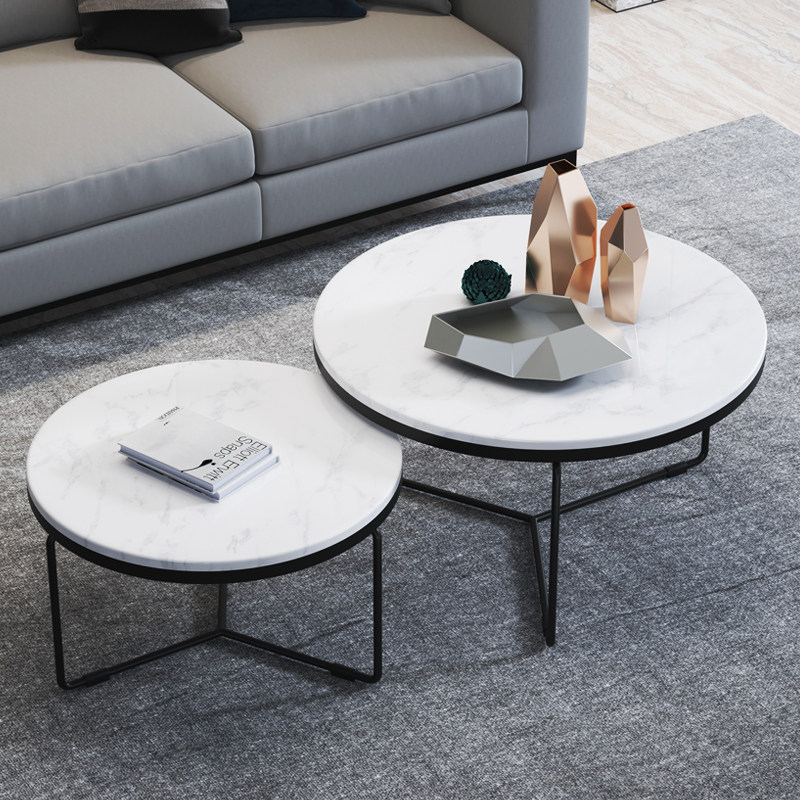 Marble round coffee table simple Nordic living room designer small apartment wrought iron light luxury net red mother-in-law coffee table