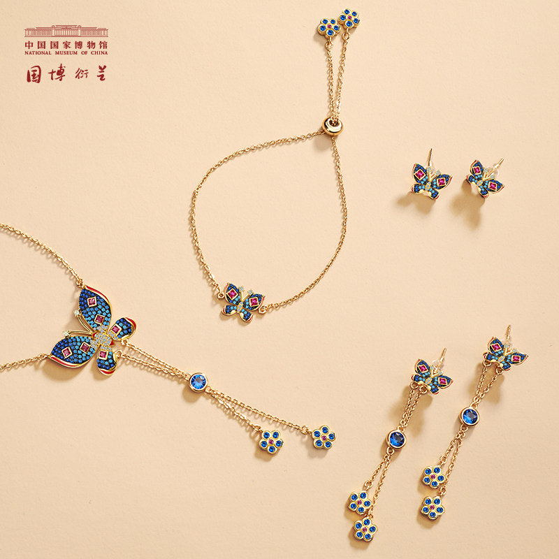 National Museum of China Butterfly Ancient Style Jewelry 925 Silver Necklace Bracelet Birthday Earring Gift for Girls