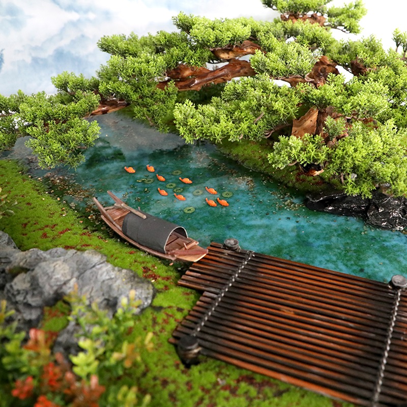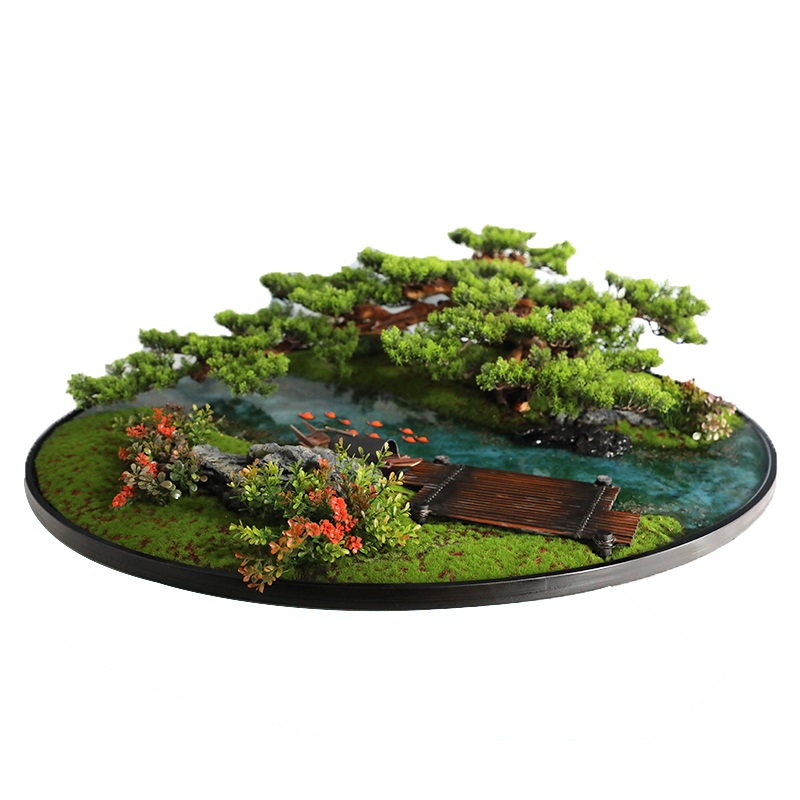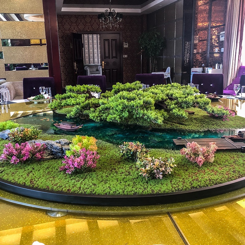 Chinese-style hotel dining table large round table ornaments in the middle of the decorative flower ornaments turntable decorative flower plate scenery micro landscape Jiangnan