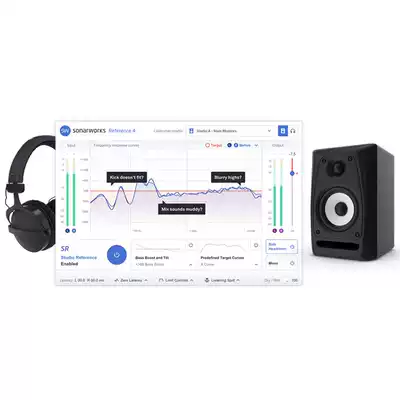Sonarworks Reference 4 studio version boxed with test microphone speaker headset frequency calibration