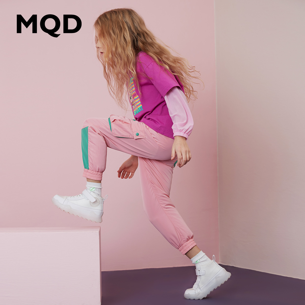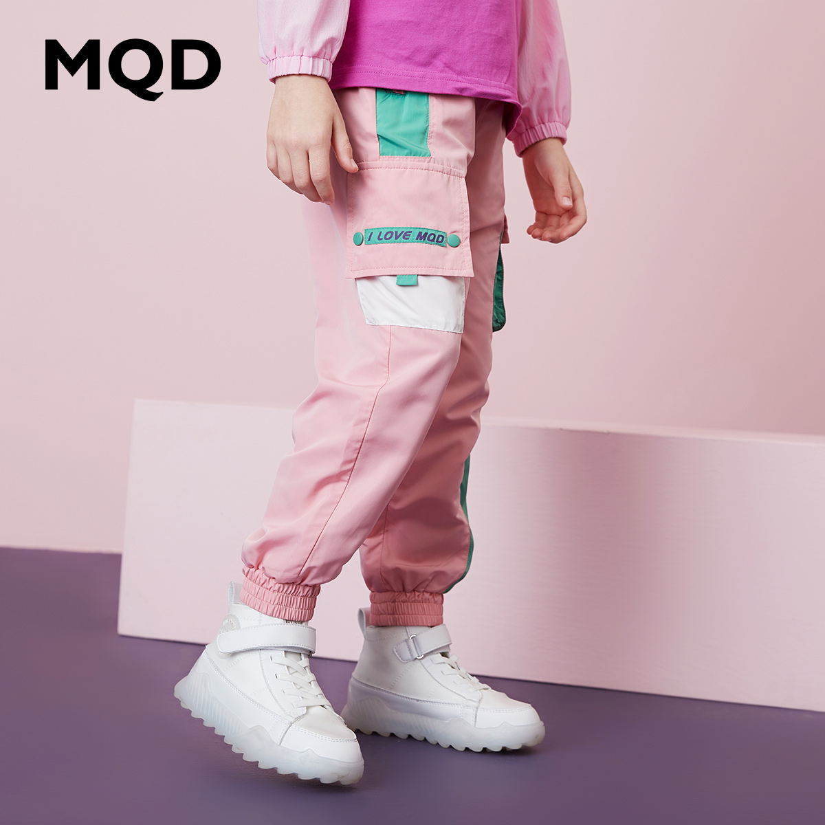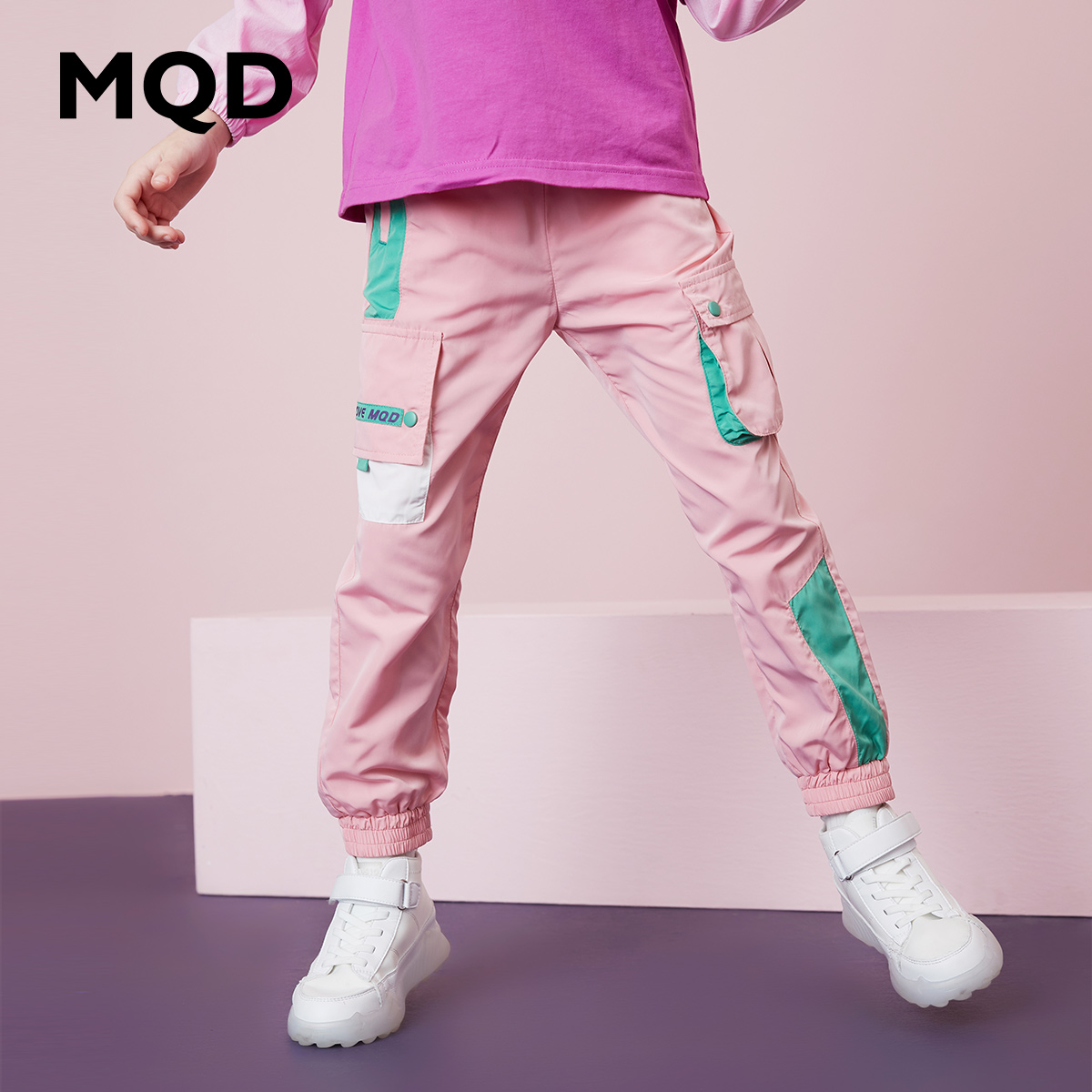 MQD children's clothing girls autumn casual pants 21 new children's middle and big children's color overalls sports tie pants tide