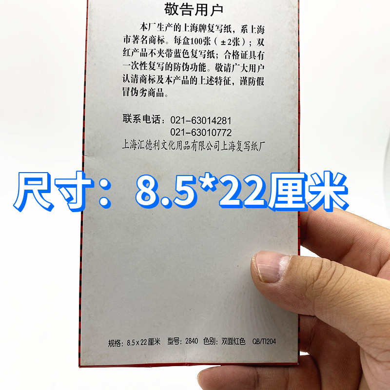 48 open Shanghai brand 2840 red copy paper receipt size A6 red printing paper 8.5 * 22 cm a pack of 100 sheets