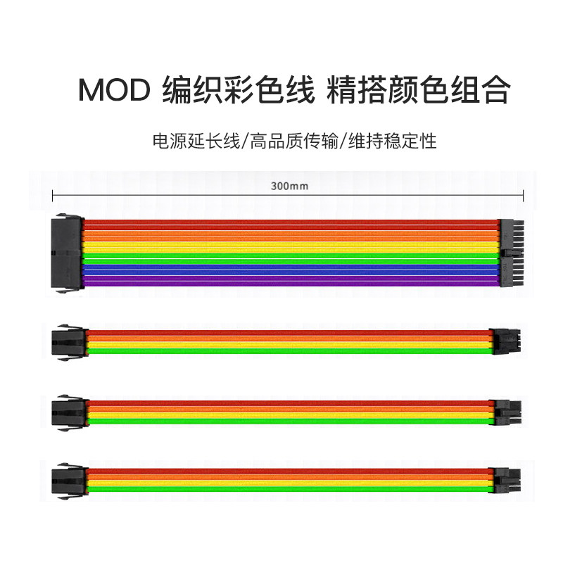 Game Gravity Custom Braided Rainbow Black, White and Gray Colors All Adapt to ATX Cables