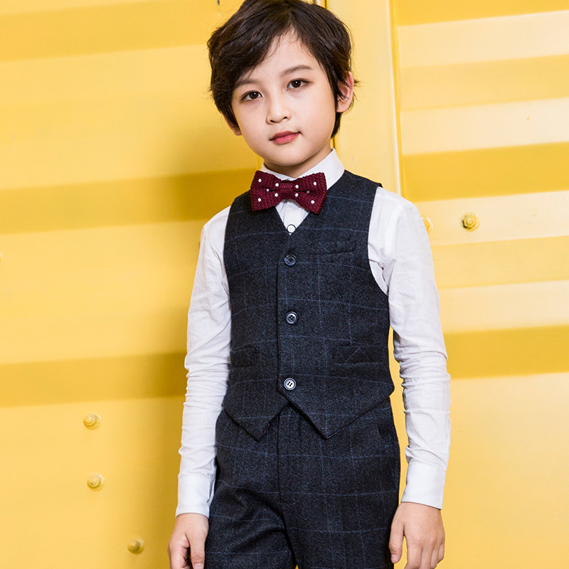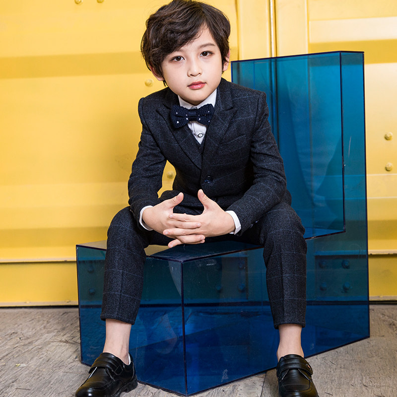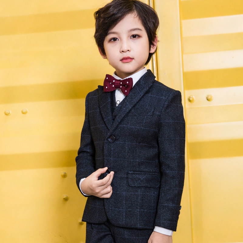 Children's small suit suit three-piece handsome boy suit English piano performance clothing autumn and winter flower girl dress