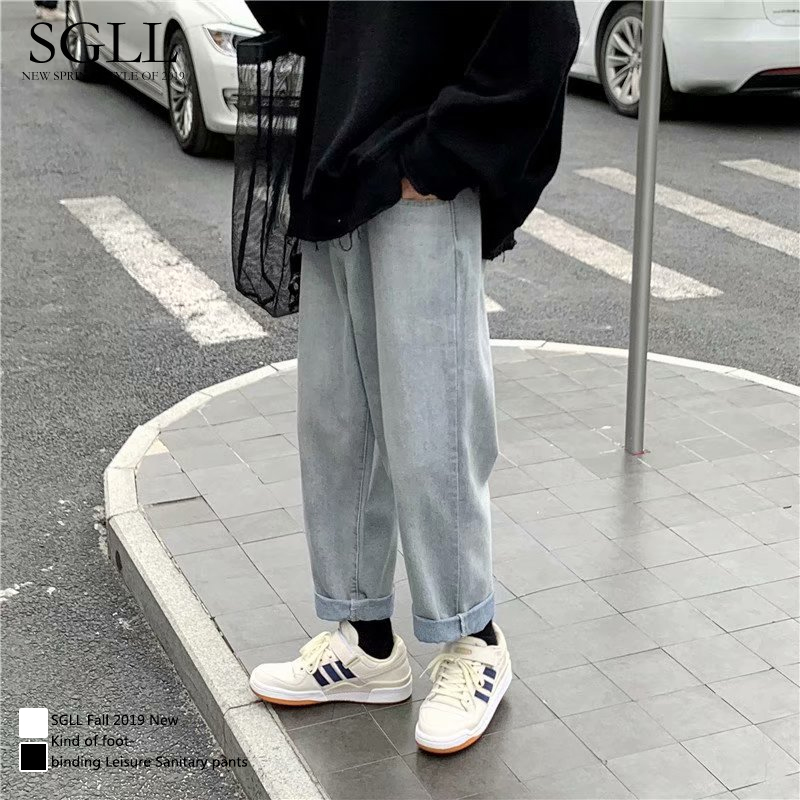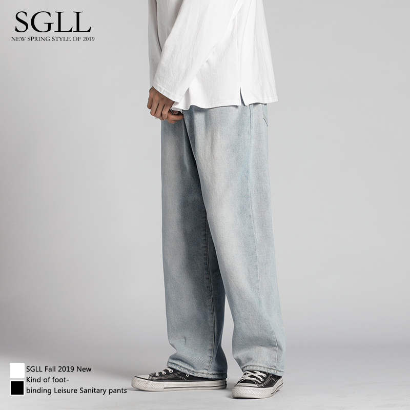 Fashion brand jeans men's straight loose drop sense wide legs autumn wild pants Korean version of the trend Dad light-colored trousers