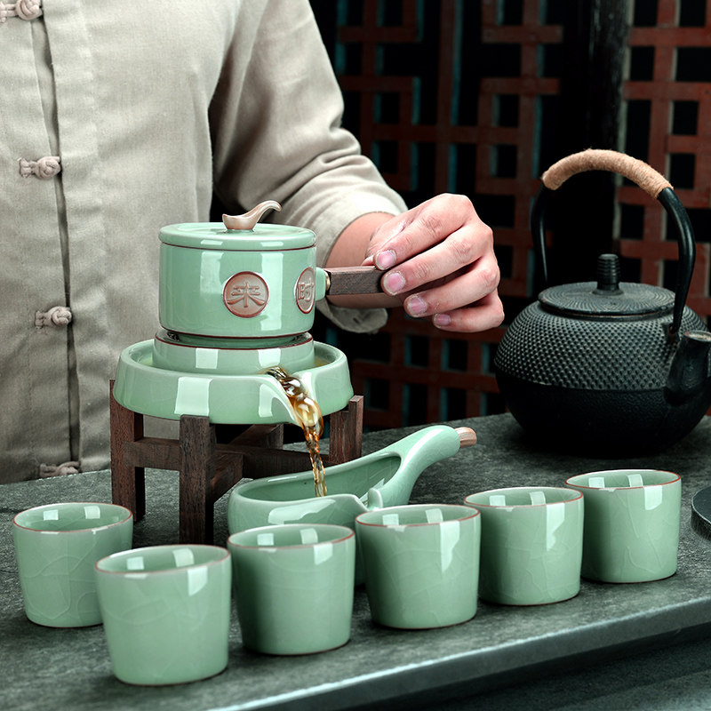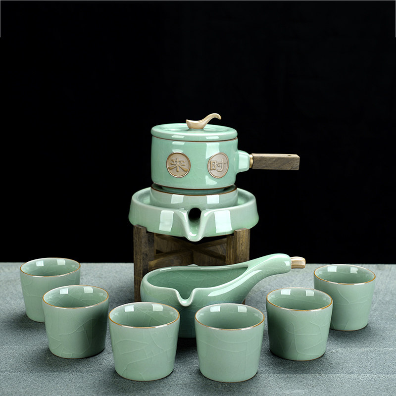 Shoutao lazy people stone mill Ru kiln opening semi-automatic household tea making artifact creative ceramic kung fu tea set set