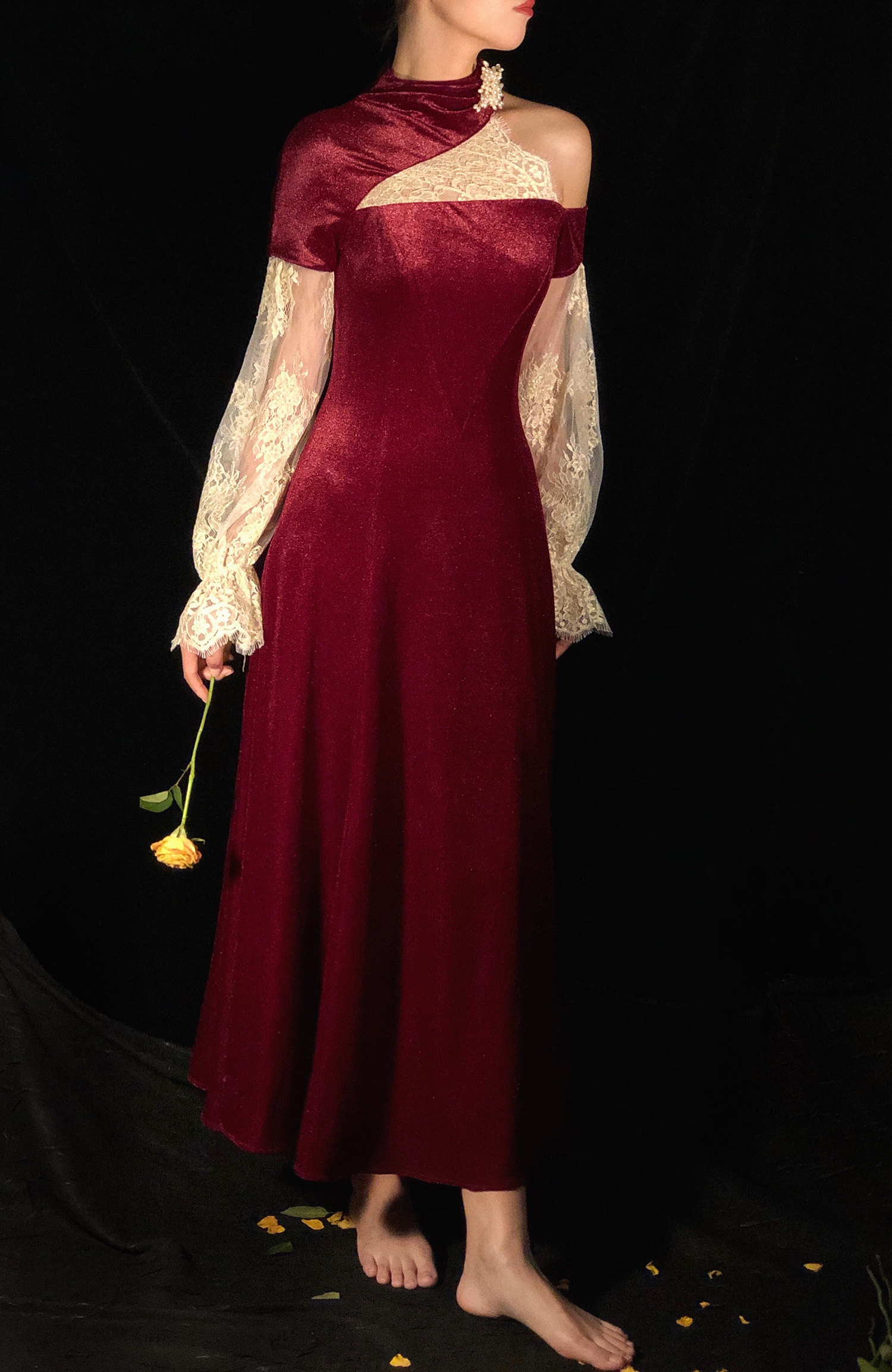 zisi Arbitrary Four Rouge Blood Red Flag Gown Improved Version Foreign Dress Lace Hollowed-out Sexy Bridesmaid Gown Toast