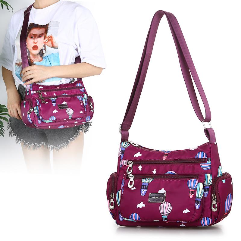 Nylon printed slanted satchel bag Canvas Single Shoulder Bag for Old Age Flower Bouquet Mom Package Large Capacity Travel Scapes Bag