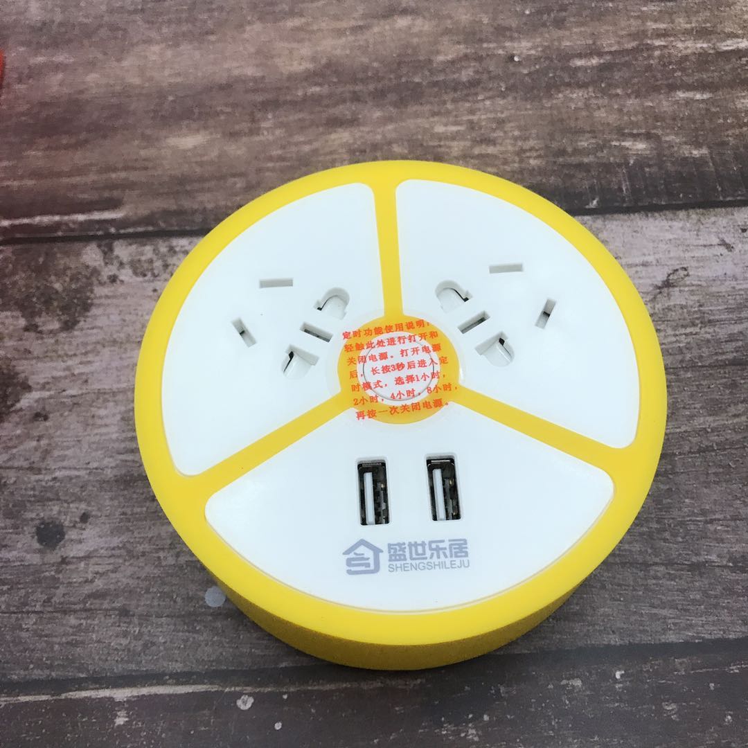 Dual usb socket charging disc travel plug-in extension cord wiring board multi-function with timing switch 2A output