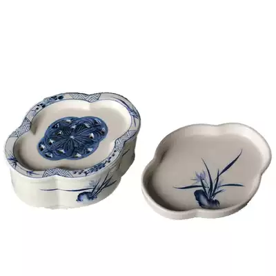 Lin Xi Old Chaozhou retro begonia blue and white tea boat Hand-painted small tea tray Dry brewing tray Ceramic travel portable tea set