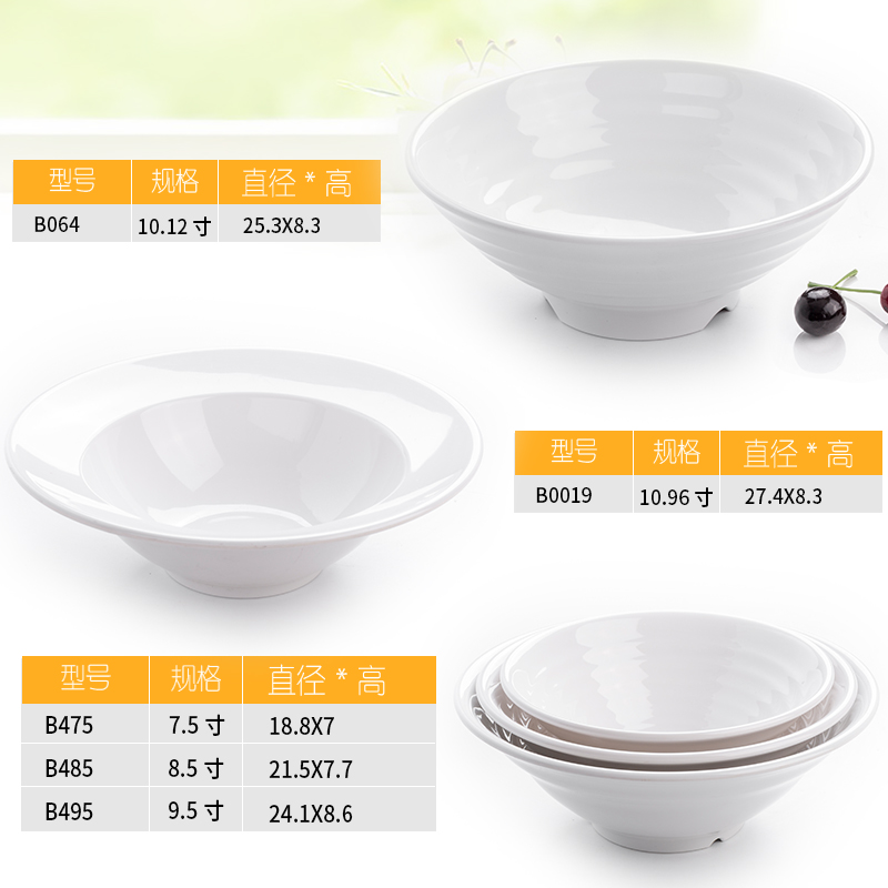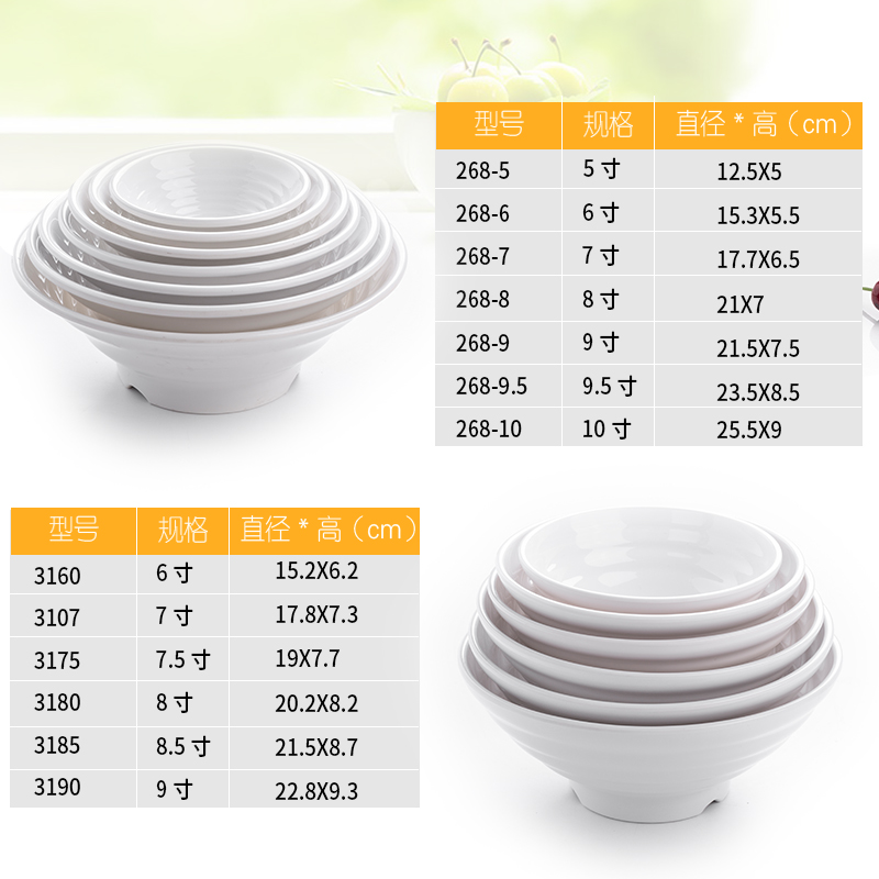 White Melamine Large Bowl Soup Bowl of Blister Noodles Bowl Commercial Plastic Fast Food Restaurant Noodle Gallery Special Imitation Porcelain Bucket Hat Noodles Rice Noodle Bowl