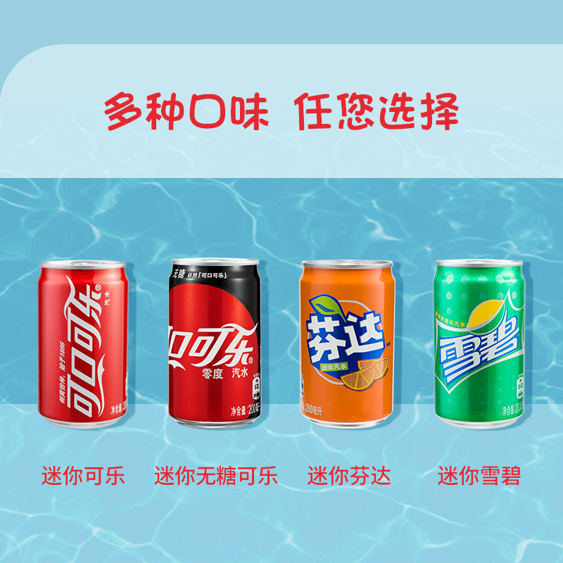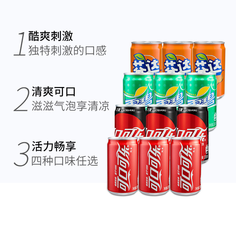 Coke * 12 cans of snow be* 12 jars of fenda * 12 cans no sugar cola * 12 24 cans of cola * 24 jars of Finda * 24 jars without sugar coke * 24 cans of coke * 12 cans of snow