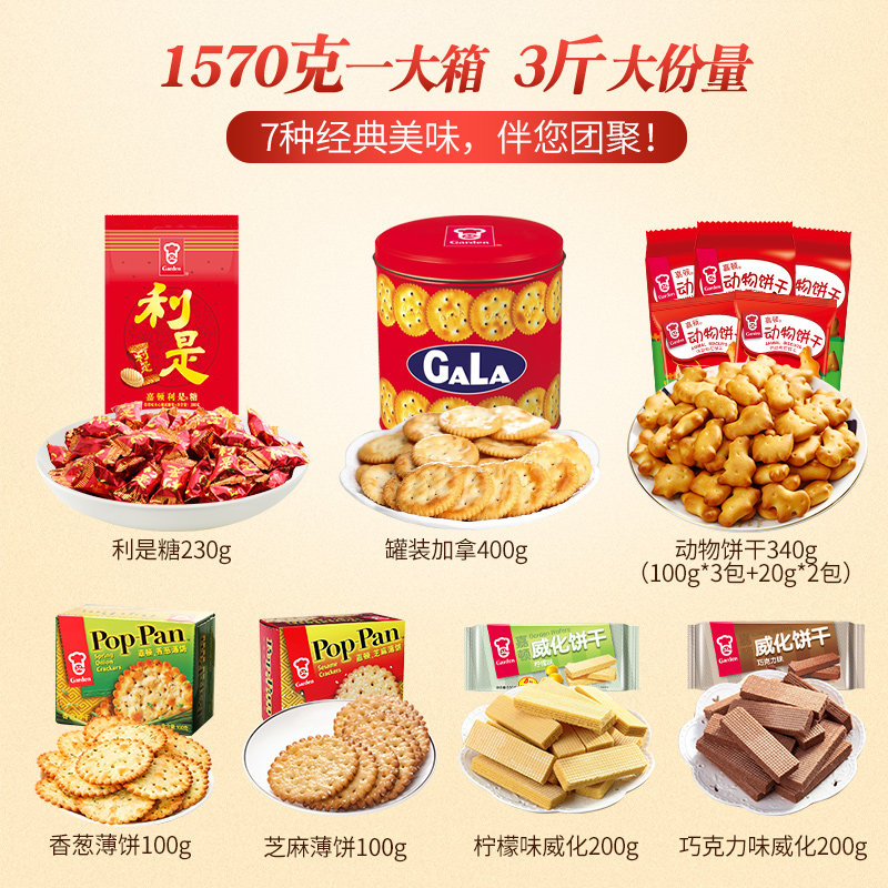 Garton Jiayou blessing gift box 1570G candy biscuits snack food New Year wedding company to send gifts